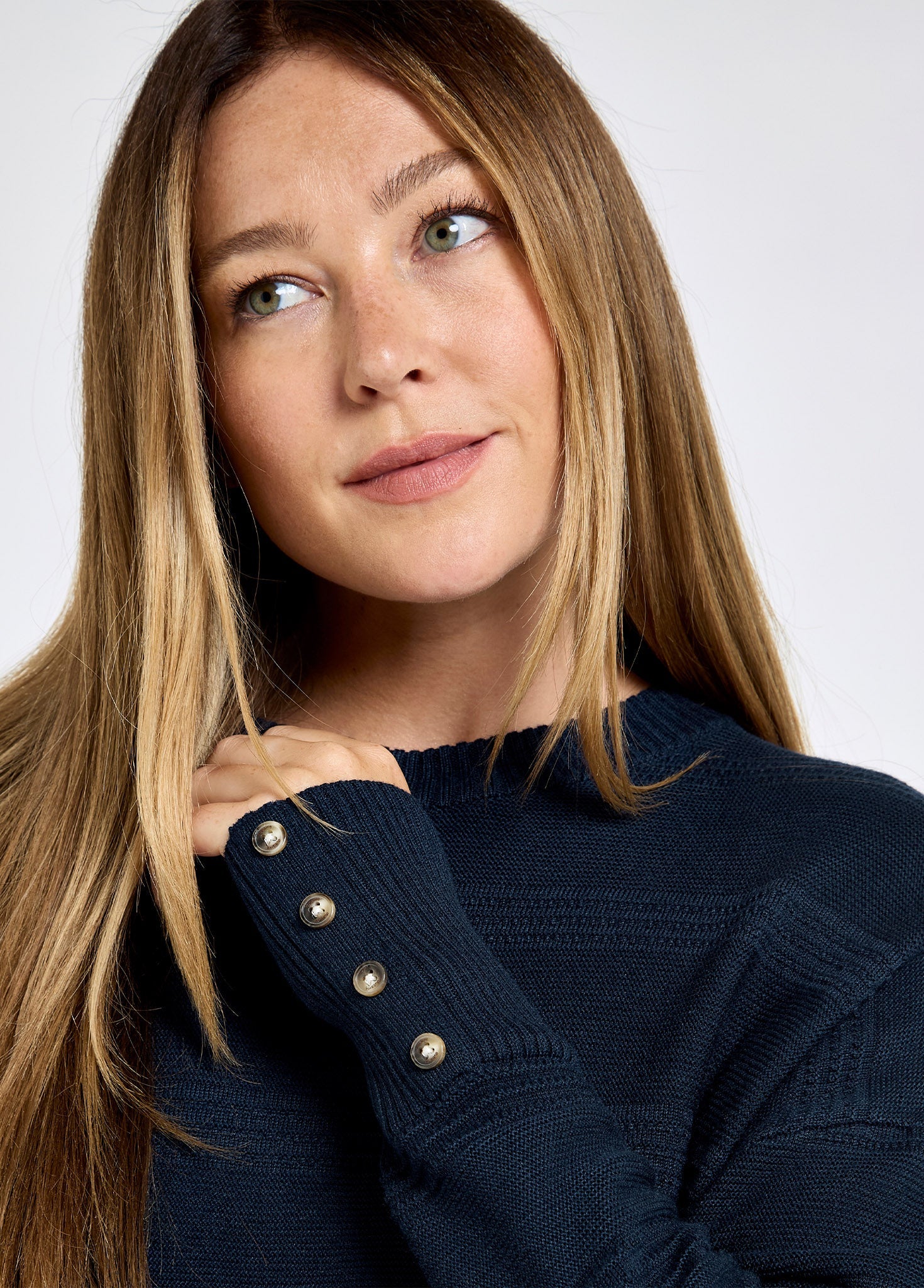 - Subtiele, flatterende structuurstrepen over de gehele trui