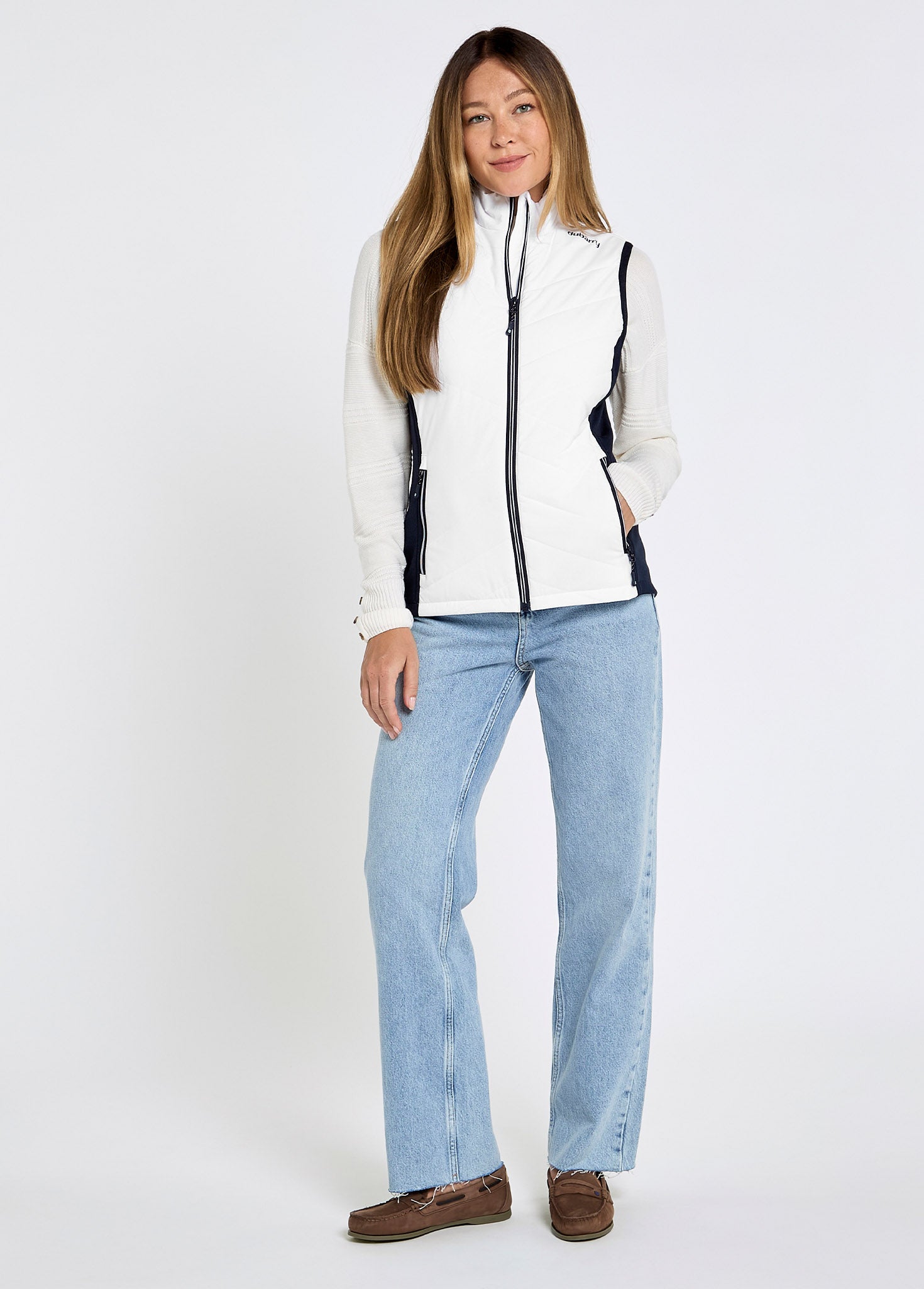 De Sunway bodywarmer van Dubarry is de ultieme metgezel voor onvoorspelbare zomerdagen. Dankzij de innovatieve hybride constructie geniet je van het beste van twee werelden: een lichtgewicht, met PrimaLoft® gevoerde body voor behaaglijke warmte, en zijpanden van stretch-softshell voor ongekende bewegingsvrijheid. Het getailleerde silhouet en de elegante verlaagde zoom zorgen voor een sportieve, doch verzorgde uitstraling. Of je nu op de jachthaven bent of door de stad flaneert; de Sunway biedt veelzijdig comfort voor elk buitenmoment.